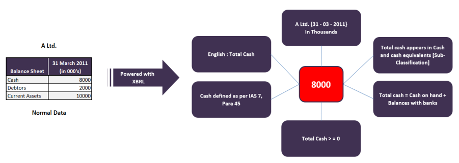 balance sheet of company A Limited. Let us see how XBRL can add value to the data here.
